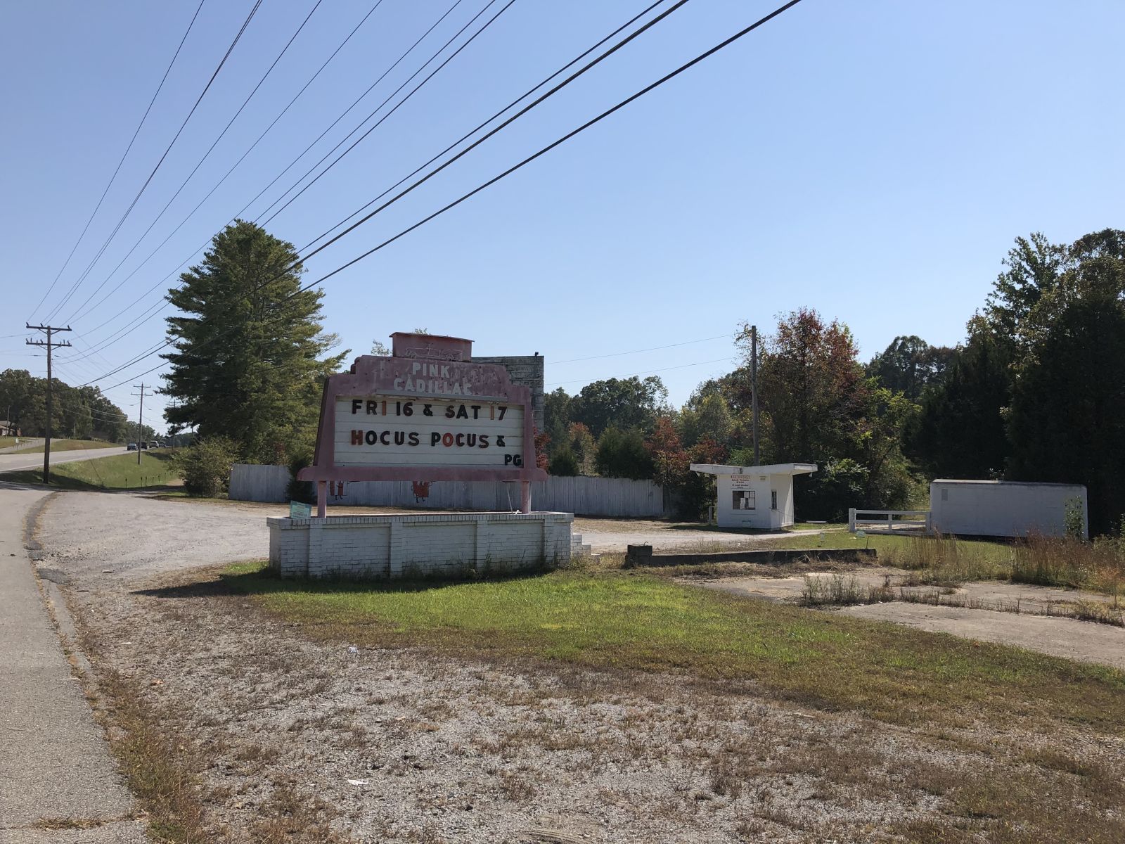 The Pink Cadillac Drive-in is a single screen drive-in theater located in Centerville, Tennessee which is located southwest of Nashville, TN. The Pink Cadillac Drive-in has been operating since originally opening in 1950. It can hold about 300 cars and is open seasonally from Spring through Fall. They only accept cash at the box office but they do accept credit cards at the concession stand.